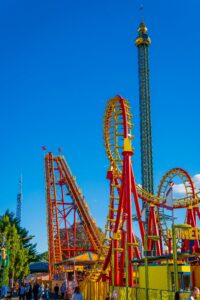 • ze zjeżdżalniami przechodzącymi przez akwarium z rekinami,
