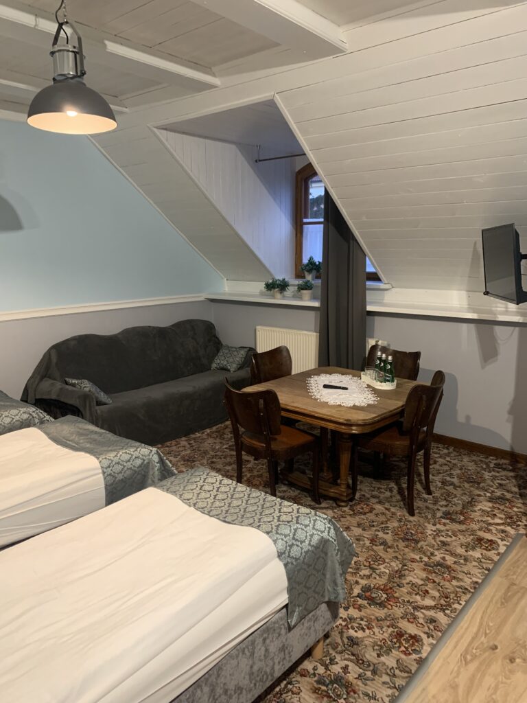 Hotel Alumnat w Tykocinie. Dla gości dyspozycji posiadamy restaurację z kuchnią kresową, miejsca noclegowe w pokojach 2, 3 i 4 – osobowychz pełnym węzłem sanitarnym, salę konferencyjno-bankietową mogącą pomieścić 100-osób, ogródek letni nad brzegiem rzeki Narwi oraz domek myśliwski z salą dla 50-osób. Budynek o przytulnym i estetycznym wystroju wnętrz. Bezpłatne Wi-Fi oraz parking.