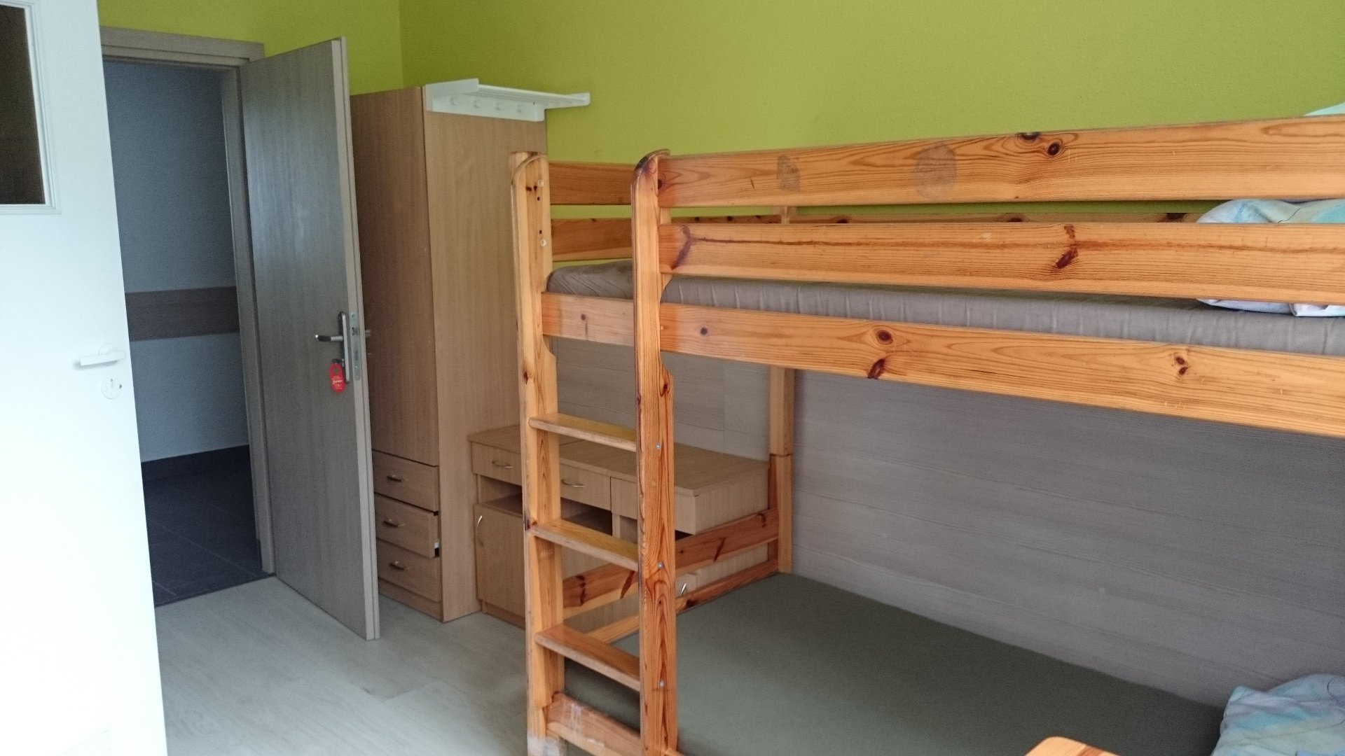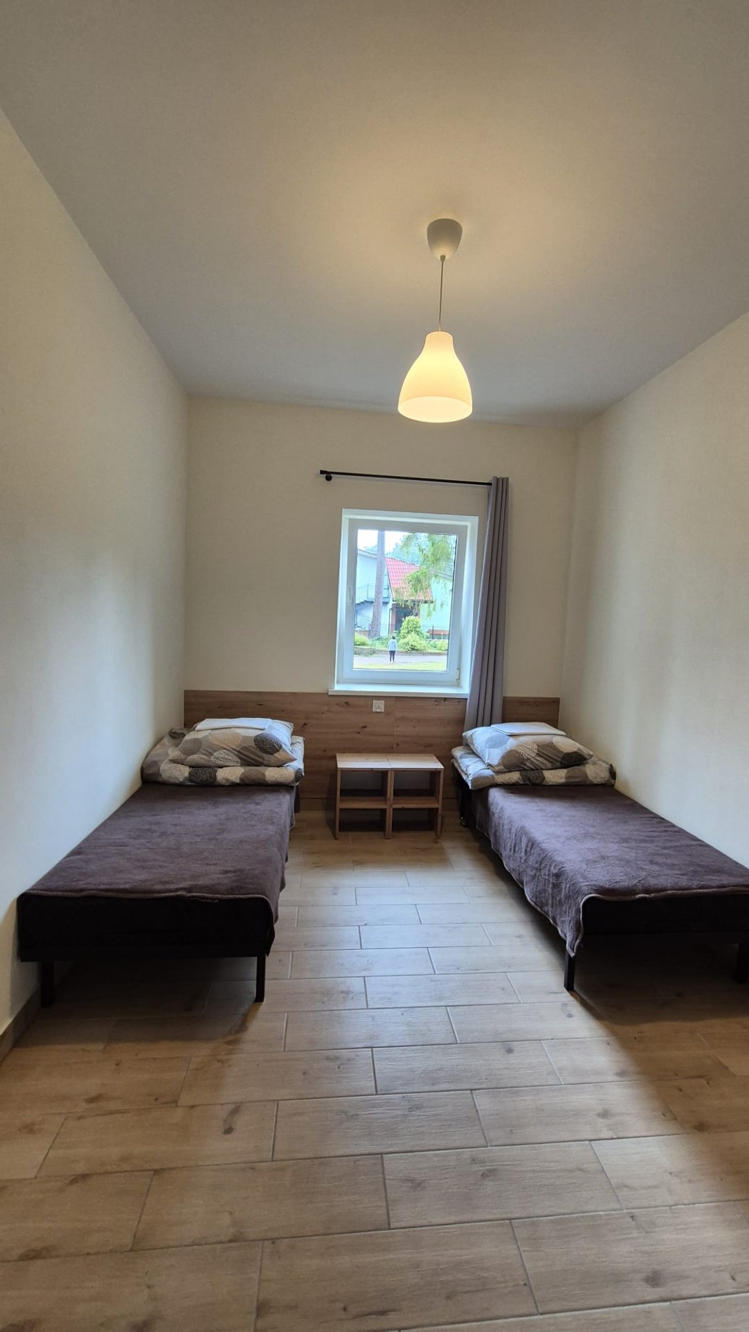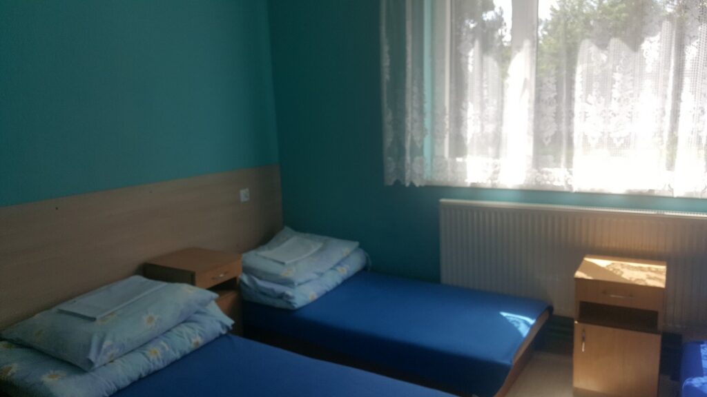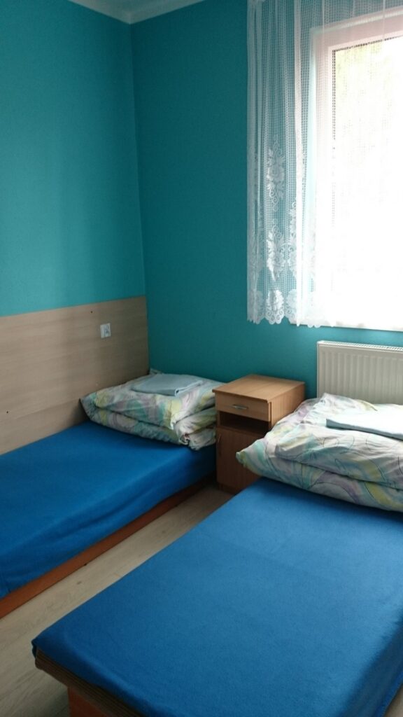 3) Pokoje 2, 3, 4 i 5 – osobowe z sanitariatami (WC, prysznice, umywalki) na korytarzu.